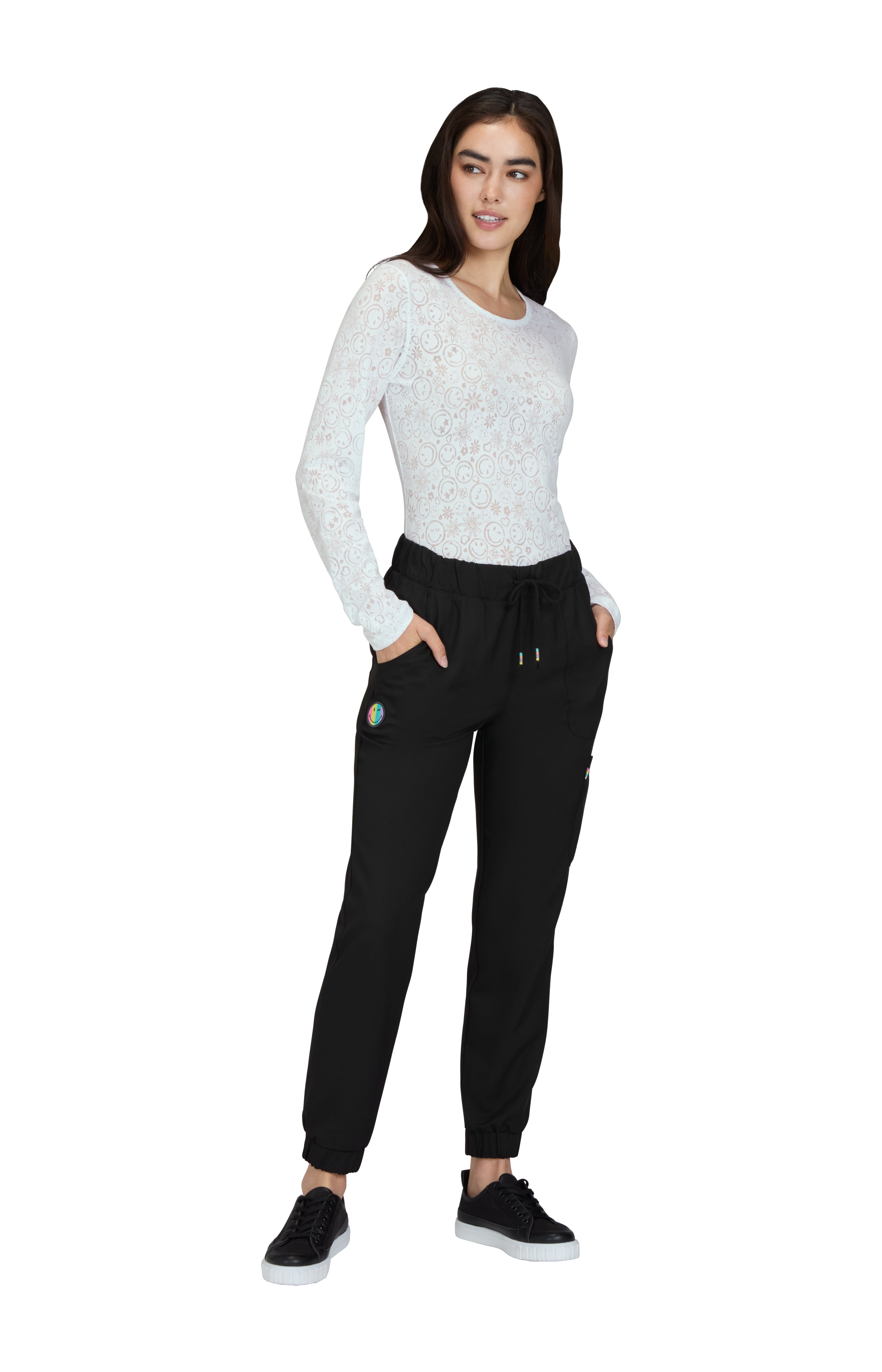 Spread cheer with this super comfy limited edition women's jogger-style scrub pant. Contemporary fit.